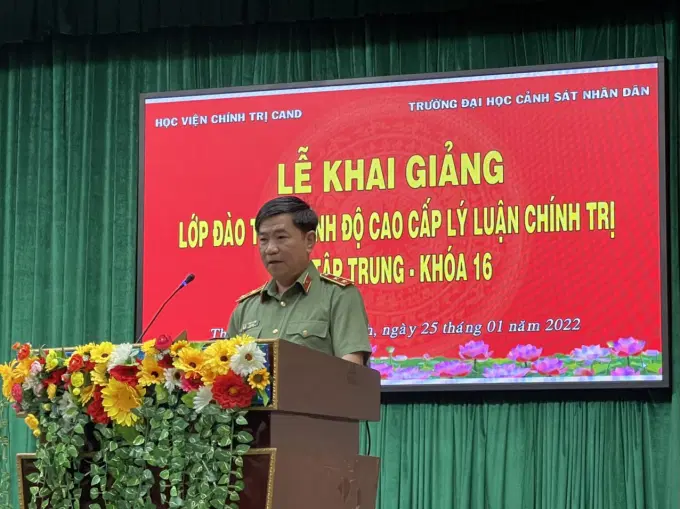 Phát biểu tại buổi Lễ, đồng chí Trung tướng, PGS.TS Trần Vi Dân, Giám đốc Học viện chúc mừng các học viên đủ điều kiện tham gia lớp học, đồng thời ghi nhận sự nỗ lực, chủ động của các đơn vị chức năng thuộc Học viện và Trường Đại học Cảnh sát nhân dân trong công tác tham mưu tổ chức lớp học. Để lớp học diễn ra theo đúng chương trình, kế hoạch, đồng chí Giám đốc Học viện đề nghị các đơn vị chức năng thuộc Học viện phối hợp với Trường Đại học Cảnh sát nhân dân tạo mọi điều kiện tốt nhất cho các học viên trong quá trình học tập. Đối với học viên tham gia lớp học cần khắc phục mọi khó khăn, thực hiện nghiêm túc quy định học tập của Học viện Chính trị CAND, Trường Đại học Cảnh sát nhân dân, thường xuyên trao đổi với giảng viên để đạt được hiệu quả học tập cao nhất.