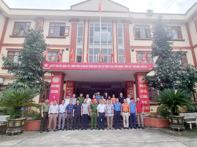 Đoàn công tác Học viện thăm và trao đổi kinh nghiệm tại Công an huyện Tràng Định, tỉnh Lạng Sơn, chụp ảnh lưu niệm tại công an huyện