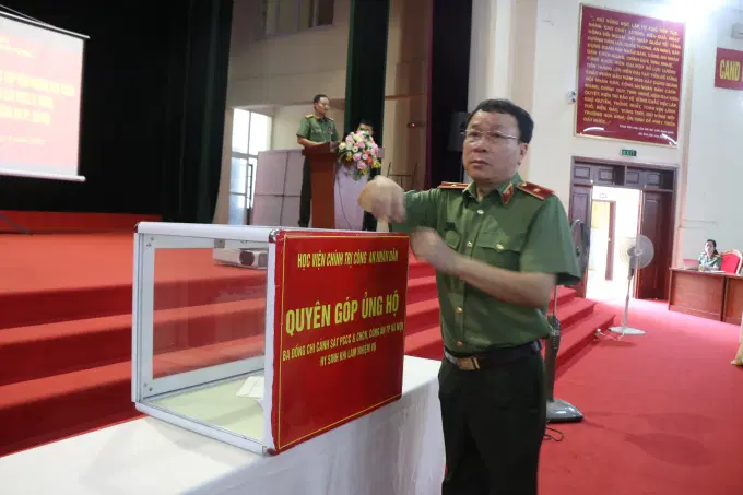 Đồng chí Thiếu tướng, PGS.TS Phan Xuân Tuy, Giám đốc Học viện phát động quyên góp ủng hộ và học tập tấm gương anh dũng của 3 CBCS hy sinh trong quá trình làm nhiệm vụ