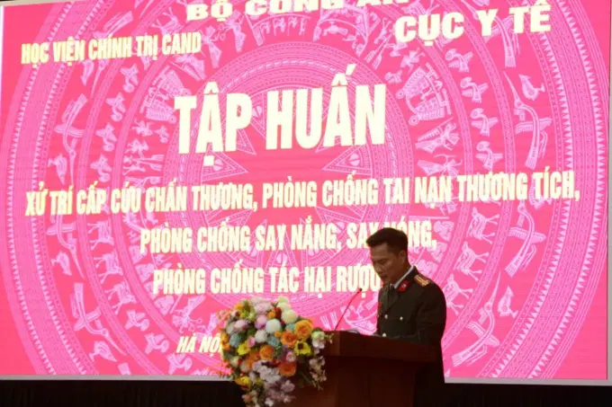 Trong lực lượng Công an nhân dân, do đặc thù công tác thường xuyên tiếp xúc với nhiều nguy hiểm, từ chiến đấu, cứu hộ, phòng cháy chữa cháy đến tìm kiếm cứu nạn, việc trang bị kỹ năng sơ cứu ban đầu là vô cùng cần thiết. Bên cạnh đó, đồng chí cũng cảnh báo về tác hại nghiêm trọng của rượu, bia đối với sức khỏe và an toàn xã hội. Rượu, bia không chỉ là nguyên nhân của hơn 230 loại bệnh tật mà còn liên quan đến khoảng 40% số vụ tai nạn giao thông tại Việt Nam. Uống rượu bia làm giảm khả năng phản ứng, gây rối loạn hành vi, mất kiểm soát, dẫn đến thương tích, tai nạn, và nhiều vấn đề xã hội khác như bạo lực, phạm tội, mất an toàn lao động. Ngoài ra, say nắng, say nóng, là hiện tượng thường xảy ra trong điều kiện thời tiết khắc nghiệt và cường độ làm việc cao. Đây là tình huống cấp cứu có thể gây nguy hiểm trực tiếp đến tính mạng nếu không được phát hiện và xử lý kịp thời.