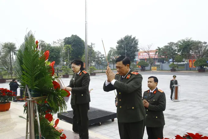 Đoàn công tác Học viện dâng hương, dâng hoa tại Tượng đài Chủ tịch Hồ Chí Minh và thăm quan, tìm hiểu lịch sử tại Phòng truyền thống của Công an tỉnh Nam Định.