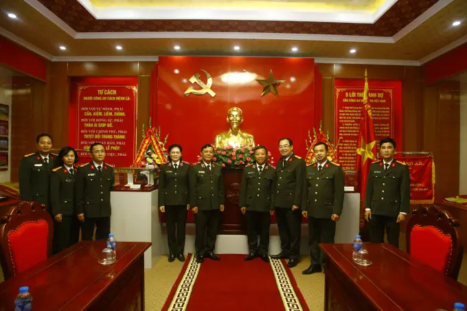 Đón và tiếp đoàn có các đồng chí trong Đảng ủy, Ban Giám đốc và đại diện các đơn vị chức năng Công an tỉnh Nam Định do Đại tá Bùi Quyết Toán, Ủy viên Ban Thường vụ Đảng ủy, Phó Giám đốc Công an tỉnh Nam Định làm trưởng đoàn.