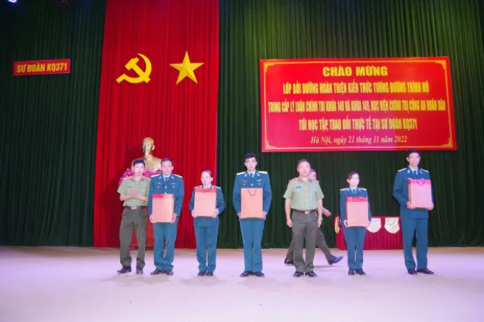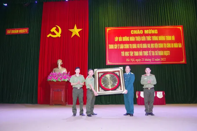 Trong không khí vui tươi, phấn khởi của Ngày Đại đoàn kết dân tộc Việt Nam, hướng tới kỷ niệm 50 năm chiến thắng “Hà Nội - Điện Biên Phủ trên không” (12/1972 - 12/2022), ngày 21/11/2022, Đảng ủy, Ban Giám đốc Học viện Chính trị CAND do đồng chí Trung tướng, PGS.TS Phan Xuân Tuy, Bí thư Đảng ủy, Giám đốc Học viện làm Trưởng Đoàn đã đến thăm và làm việc với Sư đoàn không quân 371, Quân chủng phòng không không quân, Bộ Quốc phòng. Tham gia đoàn công tác có đại diện lãnh đạo các đơn vị chức năng trong Học viện và toàn thể học viên hai lớp bồi dưỡng hoàn thiện kiến thức tương đương trình độ Trung cấp lý luận chính trị, Khóa 148 và Khóa 149 để học tập, trao đổi thực tế. Tiếp đoàn công tác, có đồng chí Đại tá Nguyễn Huy Tuấn, Bí thư Đảng ủy, Chính ủy Sư đoàn; đồng chí Đại tá Nguyễn Văn Thiện, Phó Sư đoàn trưởng, Tham mưu trưởng Sư đoàn, đại diện cơ quan các phòng và Tiểu đoàn Căn cứ sân bay Nội Bài, Sư đoàn không quân 371, Quân chủng phòng không không quân, Bộ Quốc phòng.