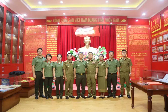 Bên cạnh chương trình làm việc, Đoàn đại biểu Cơ quan đại diện, Bộ Công an Lào tại Việt Nam đã đến tham quan, nghe giới thiệu Phòng Truyền thống số Học viện Chính trị CAND, Phòng sinh hoạt chính trị Việt - Lào và gặp mặt học viên Lào đang học tập tại Học viện.