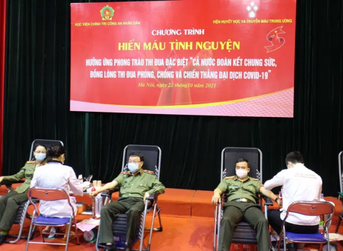 Ngày 22/10, Học viện Chính trị CAND phối hợp với Viện Huyết học và Truyền máu Trung ương tổ chức chương trình hiến máu tình nguyện hưởng ứng phong trào thi đua đặc biệt “Cả nước đoàn kết, chung sức, đồng lòng thi đua phòng chống và chiến thắng đại dịch COVID-19”.