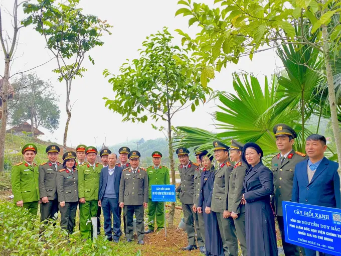 Trong không khí vui tươi, phấn khởi của những ngày đầu Xuân năm mới, kỷ niệm 95 năm Ngày thành lập Đảng Cộng sản Việt Nam (03/02/1930 - 03/02/2025), 66 năm Ngày Bác Hồ phát động Tết trồng cây (1959 - 2025); thiết thực hưởng ứng việc thực hiện Đề án “Trồng một tỷ cây xanh giai đoạn 2021 - 2025” của Thủ tướng Chính phủ; kỷ niệm 76 năm ngày khai giảng khóa học đầu tiên của Trường Đảng Nguyễn Ái Quốc (02/1949 - 02/2025) và hướng tới kỷ niệm 11 năm thành lập Học viện Chính trị CAND (01/3/2014 - 01/3/2025); tổ chức các hoạt động thiết thực hưởng ứng cuộc thi dạy giỏi cấp Bộ; cuộc thi dạy giỏi lý luận chính trị trong toàn quốc do Học viện chính trị QGHCM tổ chức, ngày 22/02/2025, Học viện Chính trị CAND thành lập Đoàn Công tác về nguồn và tổ chức Lễ trồng cây tại Khu di tích Trường Đảng Nguyễn Ái Quốc, ATK Định Hóa, tỉnh Thái Nguyên. Đồng chí PGS.TS.NGƯT, Trung tướng Phan Xuân Tuy, Bí thư Đảng ủy, Giám đốc Học viện làm Trưởng đoàn; tham gia Đoàn công tác có: đồng chí TS Nguyễn Văn Viên, Phó Vụ trưởng Vụ Các trường chính trị, Học viện Chính trị Quốc gia Hồ Chí Minh; đại diện lãnh đạo các đơn vị thuộc Học viện Chính trị CAND; đại diện đơn vị chức năng của Công an tỉnh Thái Nguyên; đại diện Ban Thường vụ Đảng ủy, Ủy ban nhân dân xã, Ban Chỉ huy Công an xã Bình Thành, huyện Định Hóa, tỉnh Thái Nguyên và Ban Chỉ huy lớp đào tạo cao cấp LLCT, hệ tập trung - Khóa 6 (Lớp T03.CCCT.K6.TT3).