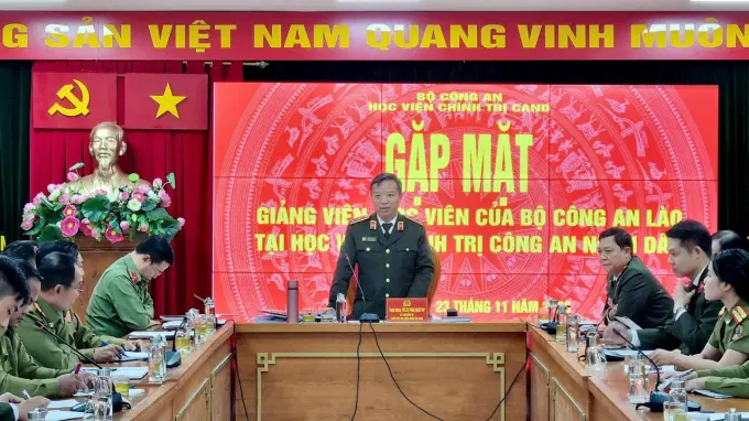 Hướng tới kỷ niệm Quốc khánh nước Cộng hoà Dân chủ Nhân dân Lào (02/12/1975 - 02/12/2023), ngày 23/11/2023, Học viện Chính trị CAND trang trọng tổ chức buổi gặp mặt giảng viên, học viên của Bộ Công an Lào đang giảng dạy, học tập tại Học viện.