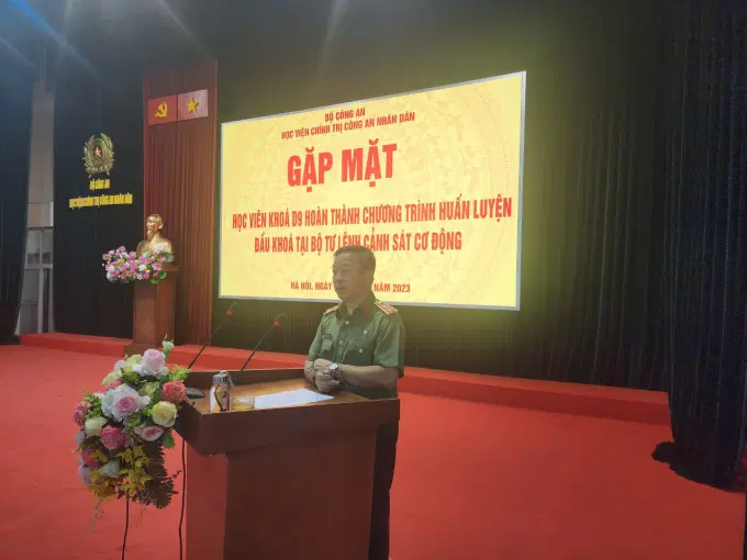 Để động viên và nắm bắt tâm tư, nguyện vọng của học viên khoá D9, góp phần nâng cao hiệu quả công tác đào tạo, quản lý, giáo dục học viên; ngày 07/4/2023, tại Hội trường trung tâm, Học viện Chính trị CAND tổ chức gặp mặt, quán triệt đối với học viên khóa D9 hoàn thành chương trình huấn luyện đầu khóa học tại Trung tâm Huấn luyện và bồi dưỡng nghiệp vụ 1, Bộ Tư lệnh Cảnh sát cơ động (K02) trở về Học viện học tập, rèn luyện. Đồng chí Trung tướng, PGS. TS Phan Xuân Tuy, Bí thư Đảng ủy, Giám đốc Học viện dự và phát biểu chỉ đạo; tham dự buổi gặp mặt có đồng chí Thượng tá, TS Nguyễn Văn Tuấn, Phó Giám đốc Học viện; các đồng chí đại diện lãnh đạo Phòng Chính trị; lãnh đạo, cán bộ Phòng Quản lý học viên và toàn thể học viên khóa D9.