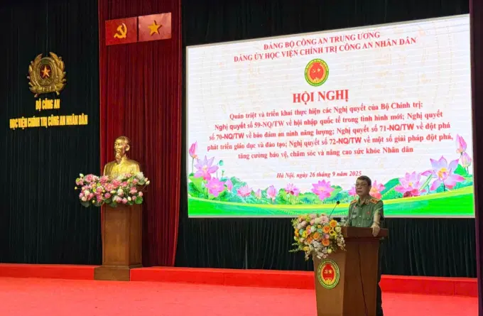 Ngày 16/9/2025, Bộ Chính trị, Ban Bí thư đã tổ chức Hội nghị toàn quốc quán triệt và triển khai thực hiện Nghị quyết số 59-NQ/TW của Bộ Chính trị về hội nhập quốc tế trong tình hình mới, Nghị quyết số 69-NQ/TW của Bộ Chính trị về bảo đảm an ninh năng lượng quốc gia đến năm 2030, tầm nhìn đến năm 2045, Nghị quyết số 71-NQ/TW của Bộ Chính trị về phát triển giáo dục và đào tạo và Nghị quyết số 72-NQ/TW của Bộ Chính trị về một số định hướng lớn, chính sách, giải pháp chủ yếu phát triển văn hóa đến năm 2045.