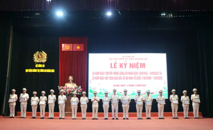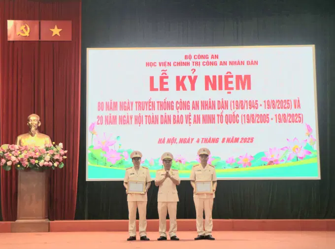Với truyền thống vẻ vang, tự hào của lực lượng CAND, trong thời khắc thiêng liêng và ý nghĩa của Lễ kỷ niệm 80 năm Ngày truyền thống CAND, Học viện Chính trị đã tổ chức trao khen thưởng đợt 4 phong trào thi đua đặc biệt kỷ niệm 80 năm Ngày truyền thống Công an nhân dân (19/8/1945 – 19/8/2025), 20 năm Ngày hội toàn dân bảo vệ an ninh Tổ quốc (19/8/2005 – 19/8/2025) đối với 03 đồng chí trong Phó Giám đốc Học viện và 54 cá nhân thuộc Học viện.