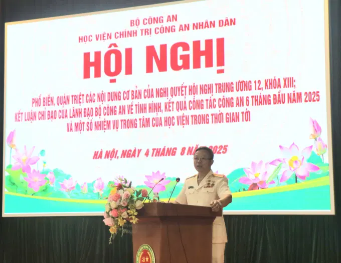 Cũng tại Hội nghị, đồng chí Bí thư Đảng uỷ, Giám đốc Học viện đã phổ biến, quán triệt các nội dung cơ bản của Nghị quyết Hội nghị Trung ương 12, Khoá XIII; kết luận chỉ đạo của lãnh đạo Bộ Công an về tình hình, kết quả công tác Công an 6 tháng đầu năm 2025 và một số nhiệm vụ trọng tâm của Học viện trong thời gian tới.