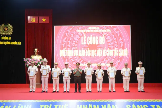 Nhằm tiếp tục đào tạo, bồi dưỡng cán bộ trong quy hoạch, tạo điều kiện để đội ngũ cán bộ lãnh đạo, chỉ huy các cấp của Học viện được rèn luyện, phát triển trong nhiều môi trường, lĩnh vực công tác khác nhau. Đặc biệt, xuất phát từ yêu cầu sớm kiện toàn đội ngũ lãnh đạo, chỉ huy các đơn vị thuộc Học viện, tạo chuyển biến, đổi mới và nâng cao hiệu quả công tác quản lý, lãnh đạo, điều hành công tác chuyên môn phấn đấu thực hiện thắng lợi nhiệm vụ chính trị năm học mới 2025 - 2026 và Nghị quyết đại hội Đảng bộ Học viện, nhiệm kỳ 2025 - 2030; Đảng ủy, Ban Giám đốc Học viện đã thảo luận trên tinh thần dân chủ, khách quan, thận trọng và thống nhất thực hiện điều động, bổ nhiệm đối với 09 đồng chí Trưởng phòng và tương đương, điều động đối với 08 đồng chí Phó Trưởng phòng và tương đương, bổ nhiệm mới 07 đồng chí Phó Trưởng phòng và lãnh đạo, chỉ huy cấp Đội.