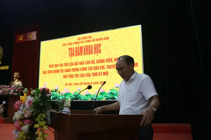 Trong báo cáo đề dẫn tọa đàm, đồng chí Thượng tá, TS Lê Thanh Hoài, Trưởng phòng Quản lý nghiên cứu khoa học, Tổng Biên tập Tạp chí Lý luận chính trị CAND báo cáo tình hình, kết quả công tác Tạp chí trong năm qua và phương hướng, nhiệm vụ công tác trọng tâm thời gian tới, chỉ rõ những thách thức mà đội ngũ những người làm báo, làm công tác truyền thông hiện nay đang phải đối mặt, như: cạnh tranh thông tin gay gắt, sự lan truyền nhanh chóng của tin giả, sự thay đổi trong hành vi tiếp nhận thông tin...