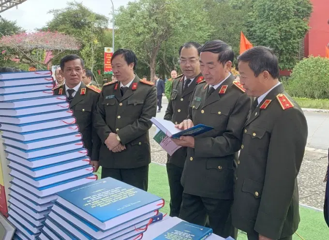 Thứ trưởng Trần Quốc Tỏ và các đại biểu thăm gian trưng bày cuốn sách "Chủ quyền không gian mạng - Yêu cầu thời đại và nghĩa vụ quốc gia" của Đại tướng, GS.TS Tô Lâm.