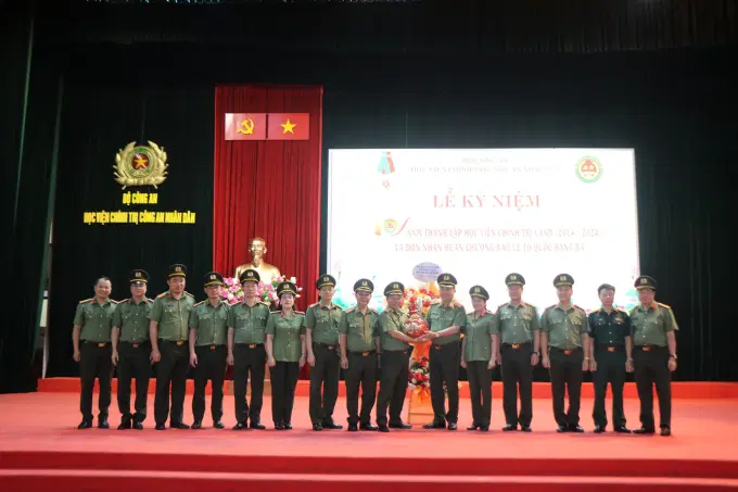 Chiều 24/4/2024, Học viện Chính trị Công an nhân dân kỷ niệm 10 năm thành lập và đón nhận Huân chương Bảo vệ Tổ quốc hạng Ba. Đồng chí Thượng tướng, PGS.TS Trần Quốc Tỏ, Ủy viên Trung ương Đảng, Phó Bí thư Đảng ủy CATW, Thứ trưởng Bộ Công an dự và phát biểu chỉ đạo. Nhân dịp này, Đại tướng, GS.TS Tô Lâm, Ủy viên Bộ Chính trị, Bộ trưởng Bộ Công an gửi lẵng hoa chúc mừng.