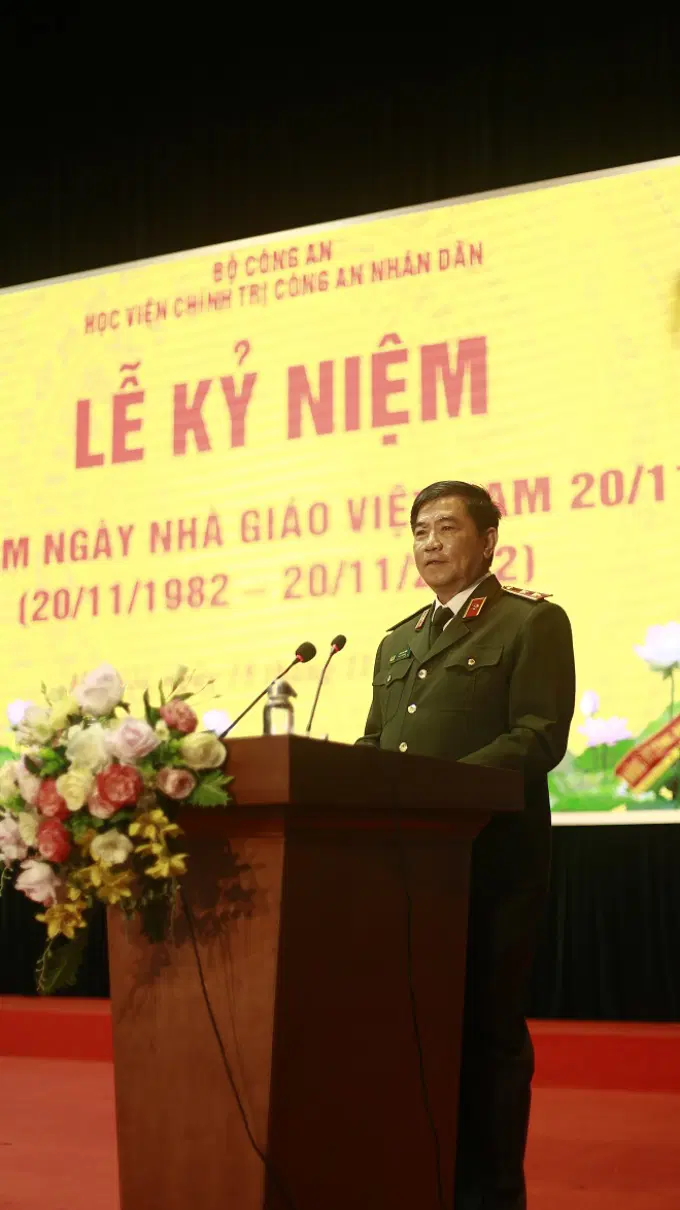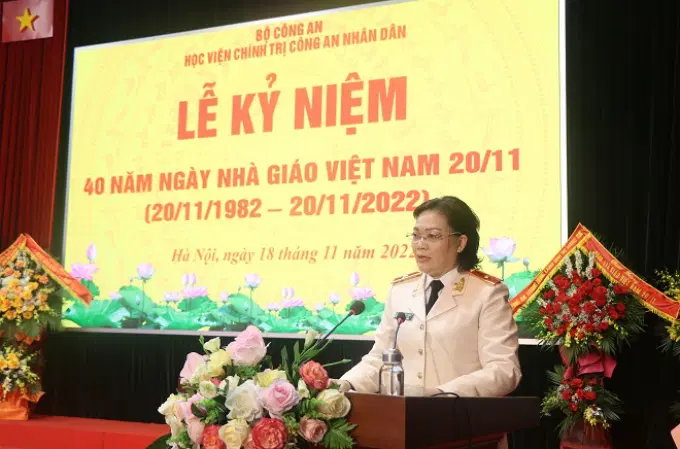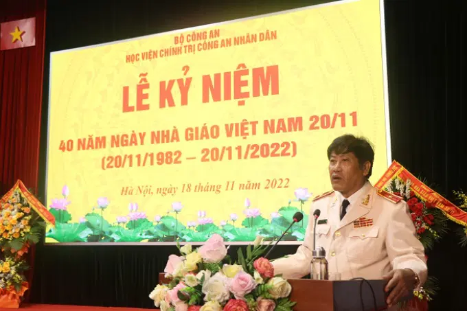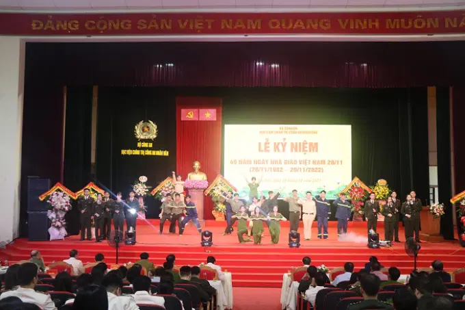Sáng ngày 18/11, trong không khí tưng bừng phấn khởi của cả nước hướng về ngày truyền thống của ngành Giáo dục Việt Nam, Học viện Chính trị CAND đã long trọng tổ chức kỷ niệm 40 năm ngày Nhà giáo Việt Nam nhằm tôn vinh và tri ân các thế hệ lãnh đạo, các thầy giáo, cô giáo cùng toàn thể cán bộ, giảng viên, công nhân viên Học viện. Đồng chí Trung tướng, PGS. TS Phan Xuân Tuy, Bí thư Đảng ủy, Giám đốc Học viện Chính trị Công an nhân dân chủ trì buổi Lễ.