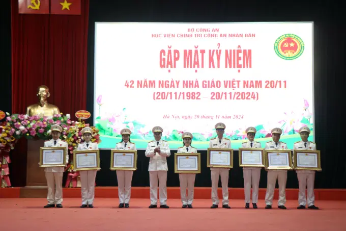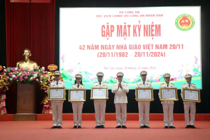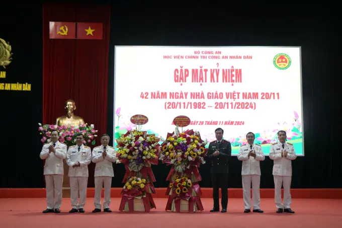 Trong không khí tưng bừng phấn khởi của cả nước hướng về ngày truyền thống của ngành Giáo dục Việt Nam, sáng ngày 19/11/2024, Học viện Chính trị CAND đã long trọng tổ chức kỷ niệm 42 năm ngày Nhà giáo Việt Nam nhằm tôn vinh sự cống hiến của cán bộ, giảng viên Học viện; đồng thời, tri ân các nhà giáo, nhà khoa học, các đồng chí lãnh đạo, nguyên lãnh đạo đối với hoạt động giáo dục, đào tạo của Học viện thời gian qua; đồng thời, là dịp để chúng ta cùng ôn lại truyền thống của Ngành giáo dục, của sự nghiệp trồng người rất thiêng liêng và cao quý. Đồng chí PGS.TS, NGƯT, Trung tướng, Phan Xuân Tuy, Bí thư Đảng ủy, Giám đốc Học viện Chính trị Công an nhân dân chủ trì buổi Lễ.