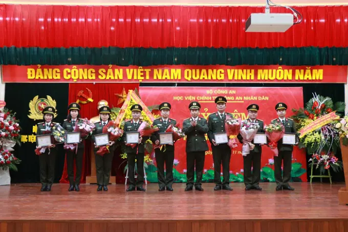 Tại buổi Lễ, thừa ủy quyền của lãnh đạo Bộ Giáo dục và Đào tạo, đồng chí Trung tướng, PGS.TS Trần Vi Dân, Giám đốc Học viện đã trao Kỷ niệm chương “Vì sự nghiệp giáo dục” cho các cá nhân đã có nhiều đóng góp cho sự nghiệp giáo dục và đào tạo của đất nước. Đồng chí Thiếu tướng, PGS.TS Đinh Ngọc Hoa, Phó Giám đốc Học viện trao danh hiệu “Giảng viên dạy giỏi” cấp Bộ năm học 2019 - 2020 cho 02 giảng viên của Học viện.