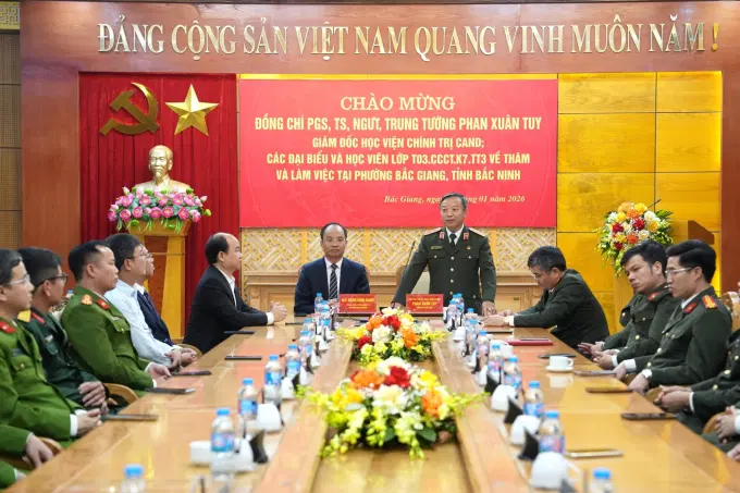 Hướng tới chào mừng Đại hội Đại biểu toàn quốc lần thứ XIV của Đảng, nhân dịp kỷ niệm 96 năm Ngày thành lập Đảng Cộng sản Việt Nam (03/2/1930 - 03/2/2026); chiều 15/1/2025, Đoàn Học viện Chính trị Công an nhân dân do đồng chí Trung tướng, PGS.TS, NGƯT Phan Xuân Tuy, Bí thư Đảng ủy, Giám đốc Học viện làm Trưởng đoàn đã đến thăm và làm việc tại phường Bắc Giang, tỉnh Bắc Ninh. Tham gia Đoàn công tác có: Lãnh đạo một số đơn vị chức năng thuộc Học viện cùng toàn thể học viên lớp T03.CCCT.K7.TT3.