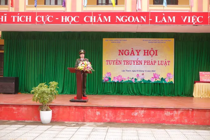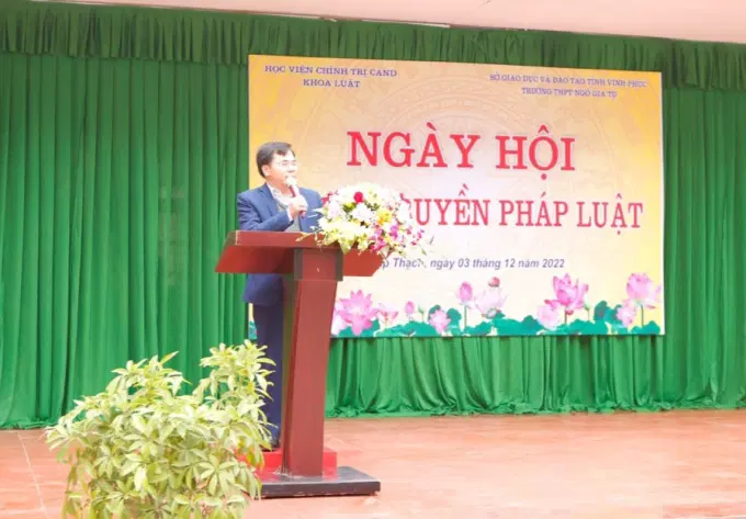 Quán triệt, triển khai thực hiện Chỉ thị số 08/CT-BCA ngày 15/8/2022 của Bộ trưởng Bộ Công an về tăng cường công tác phổ biến, giáo dục pháp luật của lực lượng Công an nhân dân, Học viện Chính trị CAND đã ban hành, chương trình, kế hoạch tổ chức hoạt động tuyên truyền, phổ biến giáo dục pháp luật năm học 2022-2023. Thực hiện kế hoạch đề ra, ngày 03/12/2022, Khoa Luật - Học viện Chính trị Công an nhân dân đã tổ chức thành công Ngày hội tuyên truyền phổ biến giáo dục pháp luật cho hơn 1000 học sinh trường THPT Ngô Gia Tự, huyện Lập Thạch, tỉnh Vĩnh Phúc.