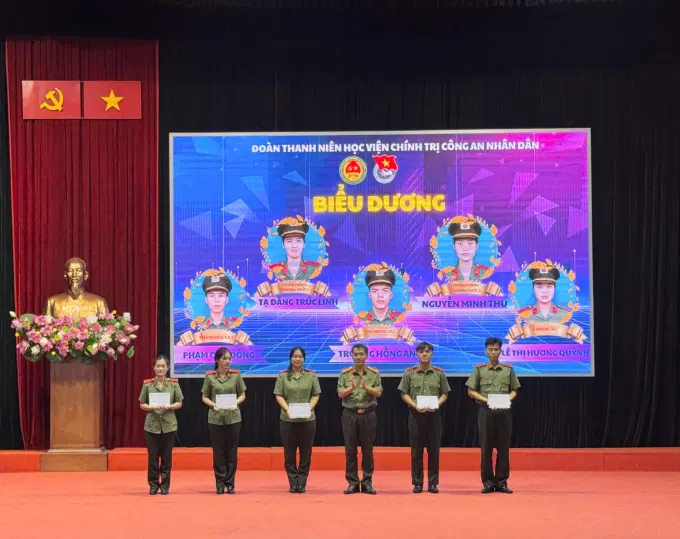 Tại chương trình, đồng chí Thượng tá, TS Nguyễn Văn Tuấn, Phó Giám đốc Học viện cùng Đoàn Thanh niên Học viện đã trao tặng 5 phần quà cho các em học viên thủ khoa đầu vào các khối. Đồng thời Đoàn Thanh niên Học viện đã thực hiện nghi thức gắn huy hiệu Đoàn cho các em đoàn viên Khóa D11 ghi dấu trở thành là những người đoàn viên thanh niên của Đoàn Thanh niên Học viện Chính trị CAND.
