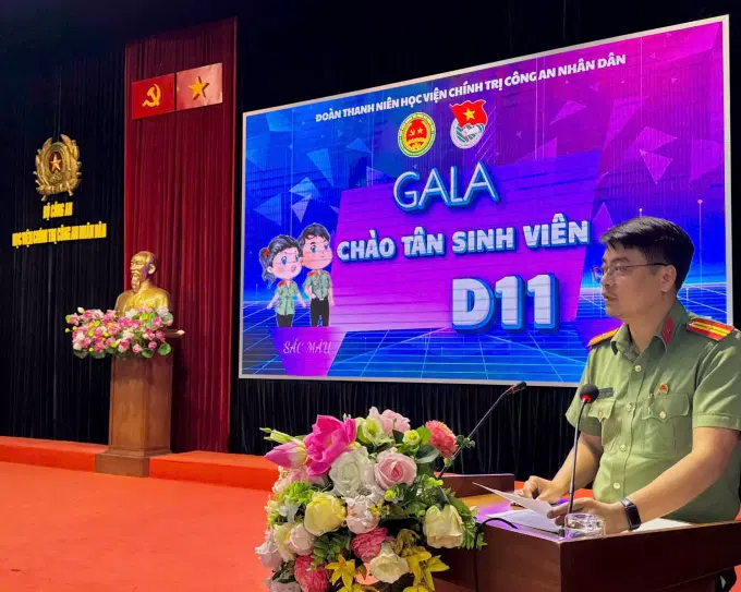 Thực hiện Kế hoạch số 1817/KH-T03-P6, ngày 20/9/2024 của Học viện Chính trị CAND về việc tổ chức các hoạt động đầu khóa đối với học viên hệ đào tạo chính quy khóa D11; Chương trình công tác Đoàn và phong trào thanh niên năm học 2024 - 2025; được sự đồng ý của Ban Thường vụ Đảng ủy, Ban Giám đốc Học viện, tối ngày 09/10/2024, tại Học Chính trị CAND, Đoàn Thanh niên Học viện tổ chức chương trình "Gala Chào tân sinh viên Khóa D11". Tham dự động viên chương trình có các đồng chí lãnh đạo, đại biểu: Về phía lãnh đạo Học viện có đồng chí Thượng tá, TS Nguyễn Văn Tuấn, Ủy viên Ban Thường vụ Đảng ủy, Phó Giám đốc Học viện; đại diện cấp ủy, lãnh đạo các đơn vị chức năng thuộc Học viện, đại diện lãnh đạo, cán bộ Phòng Quản lý học viên. Về phía Đoàn Thanh niên Học viện có các đồng chí trong Ban Thường vụ ĐoànThanh niên Học viện, cùng toàn thể đoàn viên học viên hệ đào tạo chính quy Học viện.