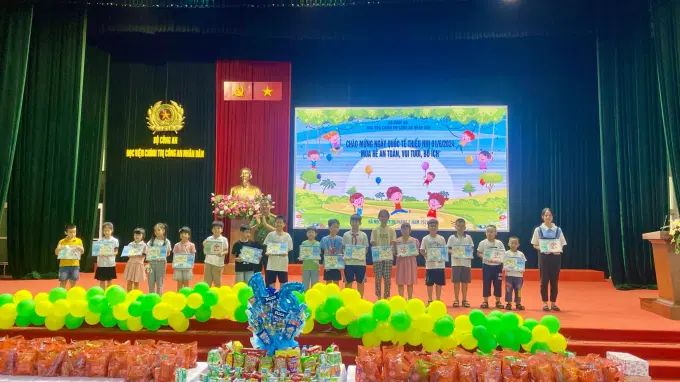 Hòa trong không khí của ngày Quốc tế Thiếu nhi, sáng ngày 30/5/2024, tại Học viện Chính trị CAND, Hội Phụ nữ Học viện đã tham mưu Đảng ủy, Giám đốc Học viện tổ chức chương trình Chào mừng ngày Quốc tế Thiếu nhi 01/6/2024 và “Mùa hè an toàn, vui tươi, bổ ích”. Dự và phát biểu động viên các cháu, đồng chí Thượng tá, TS Nguyễn Văn Tuấn, Ủy viên Ban Thường vụ Đảng ủy, Phó Giám đốc Học viện. Tham dự chương trình còn có đại diện lãnh đạo các đơn vị, các tổ chức quần chúng thuộc Học viện và toàn thể hội viên phụ nữ Học viện. Đặc biệt, buổi gặp mặt còn có sự tham gia của hơn 200 cháu thiếu niên nhi đồng là con cán bộ, chiến sĩ Học viện và các cháu thiếu nhi tiêu biểu của Trường Tiểu học Tiên Dược A, Trường Tiểu học Tiên Dược B và các cháu tại Trường nuôi dạy trẻ em khuyết tật huyện Sóc Sơn.