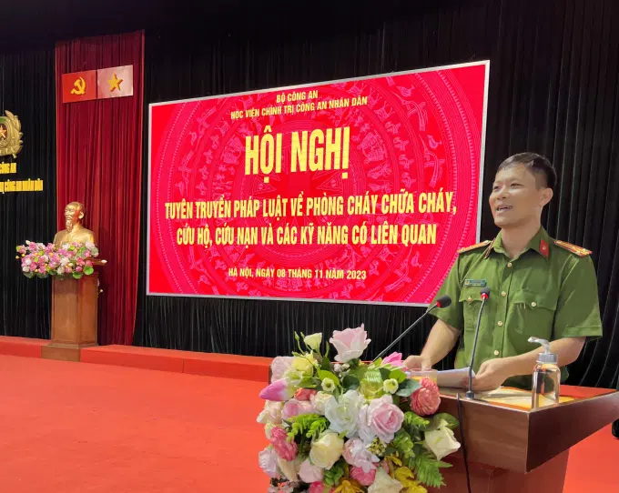 Tại Hội nghị này, Học viện đã mời đồng chí Thượng tá Tô Hồng Nho, Phó Trưởng Công an huyện Sóc Sơn đến tuyên truyền, phổ biến pháp luật về phòng cháy chữa cháy, cứu hộ cứu nạn và các kỹ năng có liên quan, theo đó đồng chí Phó trưởng Công an huyện đã phổ biến các văn bản quy phạm pháp luật về công tác phòng cháy và chữa cháy; trình bày báo cáo tóm tắt tình hình, kết quả công tác phòng cháy chữa cháy và cứu hộ cứu hộ của Thành phố Hà Nội và trên địa bàn huyện 09 tháng đầu năm; đồng thời, tập trung trao đổi về các nguyên nhân chủ yếu dẫn đến các vụ cháy nổ hiện nay và hướng dẫn cán bộ, giảng viên, học viên Học viện các kỹ năng phòng cháy chữa cháy và cứu nạn cứu hộ khi gặp tình huống cụ thể.