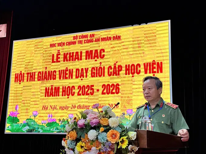 Thực hiện Kế hoạch số 2433/KH-T03-P3, ngày 31/10/2025 của Giám đốc Học viện Chính trị Công an nhân dân về việc tổ chức Hội thi giảng viên dạy giỏi cấp Học viện, năm học 2025 - 2026; sáng ngày 20/4/2026, Học viện long trọng tổ chức Khai mạc Hội thi giảng viên dạy giỏi cấp Học viện, năm học 2025 - 2026. Dự và chủ trì buổi Lễ, có đồng chí Trung tướng, PGS.TS Phan Xuân Tuy, Bí thư Đảng ủy, Giám đốc Học viện, Trưởng Ban Tổ chức Hội thi. Tham dự Khai mạc còn có đồng chí Thiếu tướng Nguyễn Như Lôi, Phó Bí thư Đảng ủy, Phó Giám đốc Học viện, Phó trưởng Ban Tổ chức Hội thi; đồng chí Đại tá, TS Tống Văn Khuông, Phó Giám đốc Học viện, Phó trưởng Ban Tổ chức Hội thi; các thành viên Ban Tổ chức Hội thi; thành viên các Ban Giám khảo, các ban giúp việc, giảng viên tham gia Hội thi; đại diện lãnh đạo các phòng chức năng và toàn thể giảng viên Học viện.