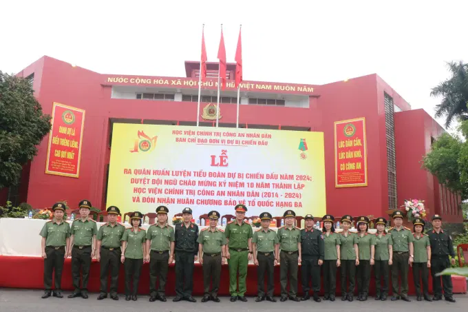 Hòa trong không khí cả nước vui tươi, phấn khởi lập nhiều thành tích hướng tới kỷ niệm 70 năm Ngày Chiến thắng Điện Biên Phủ (07/5/1954 - 07/5/2024); 49 năm ngày Giải phóng hoàn toàn miền Nam, thống nhất đất nước (30/4/1975 - 30/4/2024); 134 năm ngày sinh Chủ tịch Hồ Chí Minh vĩ đại (19/5/1890 - 19/5/2024) và nằm trong chuỗi các hoạt động kỷ niệm 10 năm Ngày thành lập Ngày Học viện Chính trị CAND; hôm nay, ngày 22/4/2024, tại Học viện Chính trị CAND, Ban Chỉ đạo đơn vị dự bị chiến đấu Học viện Chính trị CAND long trọng tổ chức Lễ ra quân huấn luyện Tiểu đoàn dự bị chiến đấu năm 2024; duyệt đội ngũ chào mừng kỷ niệm 10 năm Ngày thành lập Học viện Chính trị CAND và đón nhận Huân chương Bảo vệ Tổ quốc hạng Ba. Đồng chí Thiếu tướng, TS Nguyễn Như Lôi, Phó Bí thư Đảng ủy, Phó Giám đốc Học viện dự và chủ trì buổi Lễ; tham dự còn có đồng chí Đại tá, TS Trần Văn Tuấn, Ủy viên Ban Thường vụ Đảng ủy, Phó Giám đốc Học viện; đồng chí Thượng tá, TS Nguyễn Văn Tuấn, Ủy viên Ban Thường vụ Đảng ủy, Phó Trưởng Ban Chỉ đạo đơn vị dự bị chiến đấu, Phó Giám đốc Học viện và các đồng chí lãnh đạo Phòng, Khoa, Viện, Trung tâm; toàn thể cán bộ, giảng viên, học viên và cán bộ, chiến sĩ Tiểu đoàn dự bị chiến đấu. Về phía khách mời có sự tham gia của các đồng chí đại diện lãnh đạo các đơn vị chức năng thuộc Cục Đào tạo, Bộ Tư lệnh Cảnh sát cơ động và Công an huyện Sóc Sơn, Hà Nội.