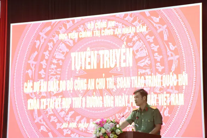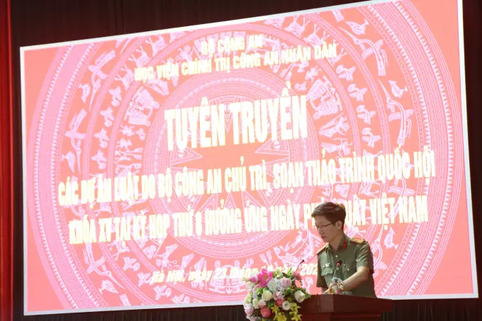 Trong khuôn khổ chương trình, đồng chí Trung tướng, PGS.TS,NGƯT Phan Xuân Tuy, Giám đốc Học viện cùng các đồng chí Trung tá Ngô Thành Huyên, Phó trưởng khoa Ngoại ngữ-Tin học và Đại úy Nguyễn Thị Thanh Nga, Giảng viên Khoa Luật đã tuyên truyền, giới thiệu các nội dung quan trọng của dự thảo Luật Dữ liệu; Thượng tá Nguyễn Anh Tuấn, Trưởng khoa Luật đã tuyên truyền, phổ biến những nội dung cơ bản của dự thảo Luật Phòng cháy, chữa cháy và Luật Buôn bán người tới cán bộ, giảng viên Học viện.