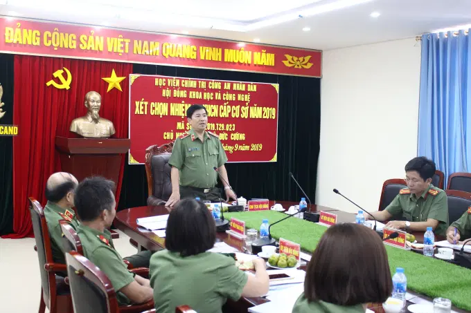 Đồng chí Thiếu tướng, PGS. TS Trần Vi Dân, Giám đốc Học viện Chính trị Công an nhân dân - Chủ tịch Hội đồng xét chọn nhiệm vụ khoa học cấp cơ sở phát biểu chỉ đạo.
