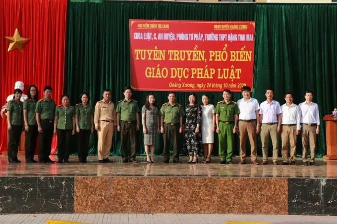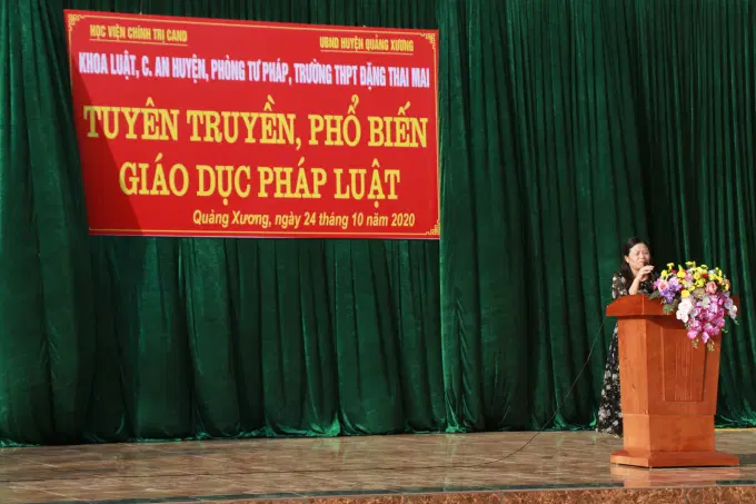Hưởng ứng Ngày Pháp luật nước Cộng hòa xã hội chủ nghĩa Việt Nam (09/11), chiều ngày 24/10/2020, Học viện Chính trị Công an nhân dân phối hợp với UBND huyện Quảng Xương, tỉnh Thanh Hóa tổ chức thành công buổi tuyên truyền, phổ biến, giáo dục pháp luật tại Trường THPT Đặng Thai Mai.