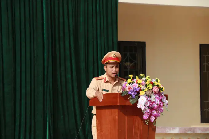 Đồng chí Thượng tá Lê Đức Cảnh, Trưởng Khoa Luật, Học viện Chính trị Công an nhân dân phát biểu tại buổi tuyên truyền, phổ biến pháp luật