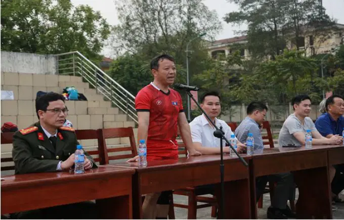 Đồng chí Trung tướng, PGS. TS Phan Xuân Tuy, Bí thư Đảng ủy, Giám đốc Học viện phát biểu trước trận thi đấu.
