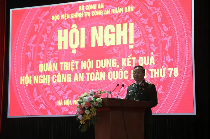 Tại Hội nghị, cán bộ, giảng viên đã được nghe đồng chí Bí thư Đảng ủy, Giám đốc Học viện truyền đạt mội số nội dung cơ bản của Hội nghị Công an toàn quốc lần thứ 78; kết luận của đồng chí Đại tướng, GS.TS Tô Lâm, Ủy viên Bộ Chính trị, Bộ trưởng Bộ Công an tại Hội nghị.