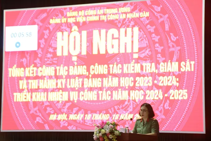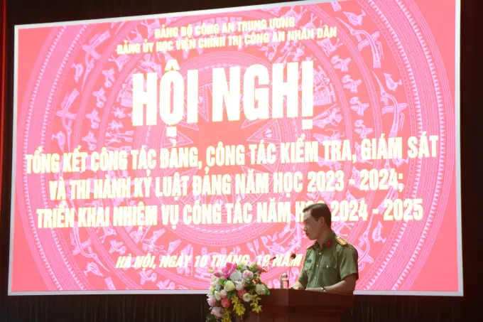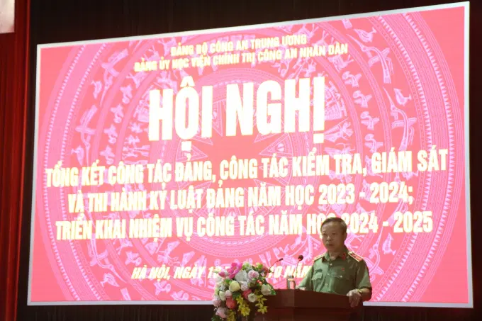 Phát biểu chỉ đạo tại Hội nghị, đồng chí Trung tướng, PGS. TS, Nhà giáo ưu tú Phan Xuân Tuy, Bí thư Đảng ủy, Giám đốc Học viện đã ghi nhận, biểu dương những nỗ lực, cố gắng, kết quả công tác của toàn thể cán bộ, đảng viên trong năm học vừa qua. Năm học 2024-2025 là năm cuối của nhiệm kỳ Đại hội Đảng bộ Học viện lần thứ II, do đó đồng chí Bí thư Đảng ủy, Giám đốc Học viện đề nghị đơn vị chức năng tập trung triển khai các hoạt động chuẩn bị cho Đại hội đảng các cấp, tiến tới tổ chức thành công Đại hội Đảng bộ Học viện Chính trị CAND lần thứ III, nhiệm kỳ 2025-2030. Đồng thời, quán triệt và triển khai nghiêm túc các chỉ tiêu, nhiệm vụ công tác năm học 2024-2025, phấn đấu hoàn thành xuất sắc các nhiệm vụ chính trị được giao./.