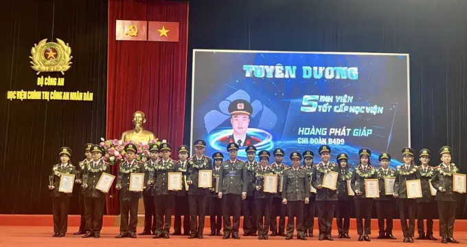 Cũng tại Hội nghị, căn cứ Hướng dẫn số 486-HD/ĐTNCA, ngày 26/9/2016 của Đoàn Thanh niên Bộ Công an (nay là Ban Thanh niên CAND) về việc tổ chức xét chọn, tuyên dương tập thể, cá nhân “Sinh viên 5 tốt” các cấp trong các học viện, trường đại học, cao đẳng CAND. Đoàn Thanh niên Học viện phối hợp với Phòng Quản lý học viên xét chọn và tuyên dương danh hiệu sinh viên 5 tốt cấp trường (tiêu chuẩn sinh viên 5 tốt gồm: đạo đức tốt, học tập tốt, thể lực tốt, tình nguyện tốt, hội nhập tốt) cho 24 học viên đủ tiêu chuẩn quy định.