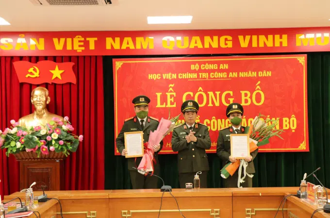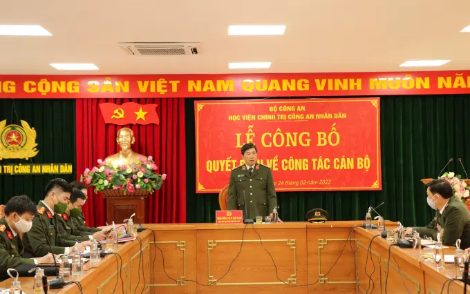 Sáng ngày 24/02/2022, Học viện Chính trị Công an nhân dân đã tổ chức Hội nghị về công tác cán bộ. Đồng chí Trung tướng, PGS. TS Trần Vi Dân, Bí thư Đảng ủy, Giám đốc Học viện dự và chủ trì Hội nghị; tham dự Hội nghị có các đồng chí trong Ban Thường vụ Đảng ủy, Ban Giám đốc Học viện; các đồng chí Ủy viên Ban Chấp hành Đảng bộ Học viện, lãnh đạo chủ chốt các đơn vị thuộc Học viện. Tại Hội nghị, lãnh đạo Phòng Chính trị đã công bố quyết định của Bộ trưởng Bộ Công an về việc bổ nhiệm Trưởng phòng Quản lý học viên và Quyết định của Giám đốc Học viện về việc giao phụ trách Khoa Quân sự, võ thuật, thể dục, thể thao. Theo đó, Đại tướng Tô Lâm, Bộ trưởng Bộ Công an đã ký quyết định điều động, bổ nhiệm đồng chí Trung tá Công Phương Vũ, sinh năm 1981, quê quán: Tây Hồ, Hà Nội, Phó Viện trưởng Viện Khoa học chính trị giữ chức vụ Trưởng phòng Quản lý học viên; Trung tướng Trần Vi Dân, Giám đốc Học viện ký Quyết định điều động đồng chí Thiếu tá Tạ Huy Du, sinh năm 1983; quê quán: Hạ Hòa, Phú Thọ, Phó Trưởng phòng Khảo thí và đảm bảo chất lượng đào tạo đến nhận công tác, giữ chức vụ Phó Trưởng khoa và giao Phụ trách Khoa Quân sự, võ thuật, thể dục, thể thao.