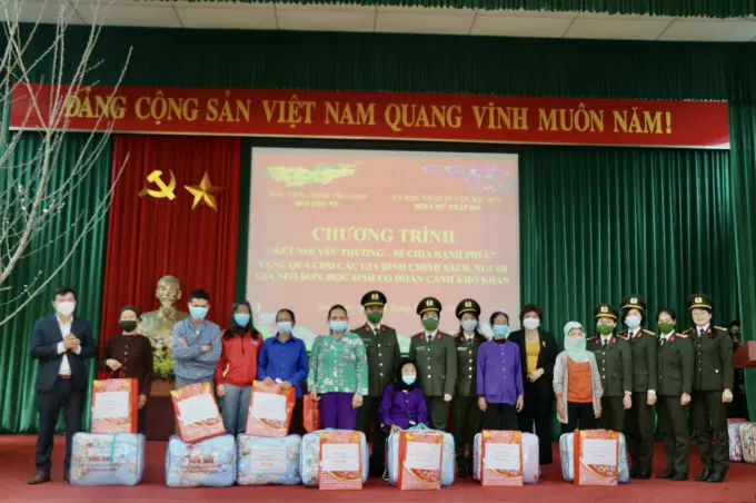 Tại buổi lễ, Đại tá Tống Văn Khuông thay mặt Đảng ủy, Ban Giám đốc Học viện Chính trị CAND đã gửi lời chúc sức khỏe, hạnh phúc và thành công, lời chúc mừng năm mới Nhâm Dần 2022 an khang thịnh vượng đến Đảng ủy, Hội đồng nhân dân, UBND huyện Sóc Sơn, Hội chữ thập đỏ huyện Sóc Sơn, Đảng ủy, UBND, HĐND hai xã Nam Sơn và Bắc Sơn, các đồng chí và toàn thể bà con nhân dân hai xã.