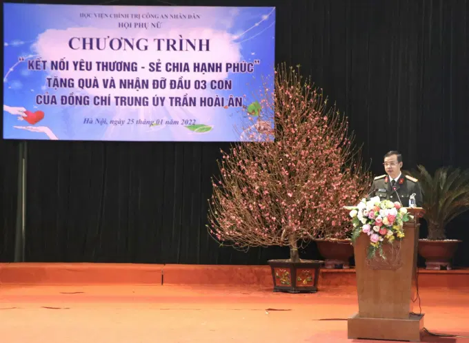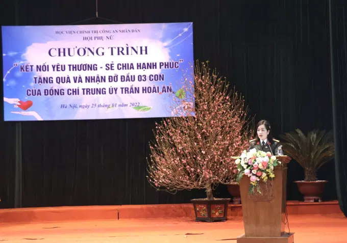 Thấu hiểu và chia sẻ với những khó khăn của đồng chí Trung úy Trần Hoài Ân, Hội Phụ nữ Học viện muốn góp những phần việc nhỏ nhưng chứa đựng ý nghĩa, giá trị lớn lao, lan tỏa nghĩa tình đồng đội, sẻ chia những tình cảm chân thành để kết nối giá trị yêu thương. Trên tinh thần đó, mặc dù chương trình phát động trong khoảng thời gian rất ngắn 12 ngày (từ 12/1 đến 24/1/2022) nhưng tính đến sáng ngày 25/1/2022, Hội Phụ nữ đã nhận được nhiều tấm lòng nhân ái từ các tổ chức, đơn vị, cá nhân trong và ngoài Học viện hỗ trợ cho 03 cháu là con của đồng chí Trung úy Trần Hoài Ân, tổng số tiền là: 58,1 triệu đồng. Tại buổi lễ, Hội Phụ nữ Học viện tặng gia đình đồng chí Ân và 03 cháu nhỏ những phần quà ý nghĩa, gồm 03 chiếc chăn bông ấm và quà dành cho bà nội và 3 cháu là 10 triệu đồng. Số tiền còn lại do các mạnh thường quân ủng hộ, trong nhiệm kỳ 2021-2026, Ban Chấp hành Hội Phụ nữ Học viện kết hợp với Quỹ “Kết nối yêu thương – Sẻ chia hạnh phúc” do Hội Phụ nữ Bộ Công an phát động, tiếp tục hỗ trợ các cháu theo kế hoạch, mỗi cháu 500 nghìn đồng/tháng.