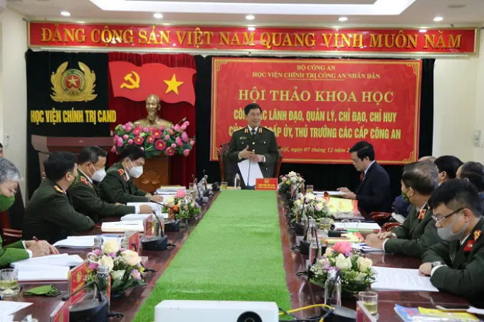 Trải qua hơn 76 năm xây dựng, chiến đấu và trưởng thành, lực lượng Công an nhân dân luôn phát huy vai trò nòng cốt trong sự nghiệp bảo vệ an ninh quốc gia, bảo đảm trật tự an toàn xã hội. Một trong những nhân tố quyết định làm nên những chiến công, thành tích của lực lượng Công an nhân dân chính là vai trò lãnh đạo, quản lý, chỉ đạo, chỉ huy của bí thư cấp ủy, thủ trưởng các cấp trong Công an nhân dân. Để làm sáng tỏ hơn nữa tầm quan trọng của công tác này, ngày 07/12/2021, Học viện Chính trị Công an nhân dân tổ chức Hội thảo khoa học “Công tác lãnh đạo, quản lý, chỉ đạo, chỉ huy của bí thư cấp ủy, thủ trưởng các cấp công an”, đồng chí Trung tướng, PGS. TS Trần Vi Dân, Ủy viên Hội đồng Lý luận Trung ương, Bí thư Đảng ủy, Giám đốc Học viện Chính trị Công an nhân dân chủ trì Hội thảo.