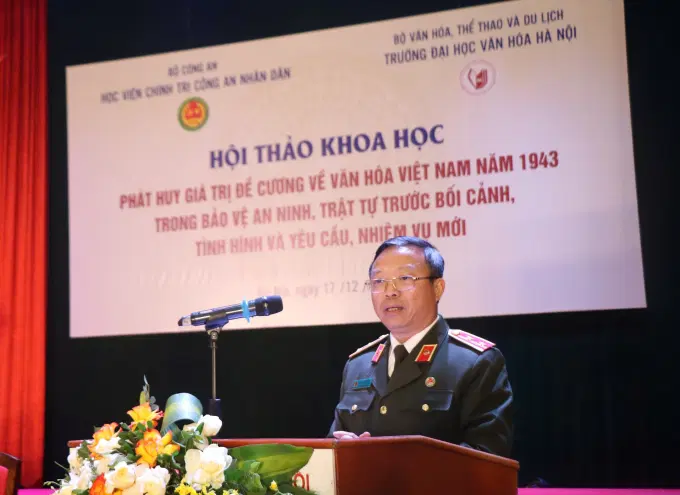 Sáng 17-12, tại trường Đại học Văn hóa Hà Nội, Học viện Chính trị Công an nhân dân phối hợp với Đại học Văn hóa Hà Nội tổ chức Hội thảo khoa học với chủ đề “Phát huy giá trị Đề cương về văn hoá Việt Nam năm 1943 trong bảo vệ an ninh, trật tự trước bối cảnh, tình hình và yêu cầu nhiệm vụ mới”.