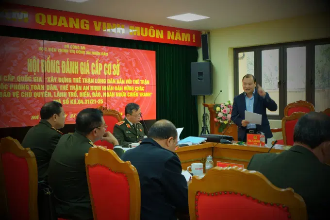 Ngày 31/12/2024, Học viện Chính trị Công an nhân dân đã tổ chức họp Hội đồng đánh giá cấp cơ sở kết quả thực hiện đề tài khoa học cấp quốc gia “Xây dựng thế trận lòng dân gắn với thế trận quốc phòng toàn dân, thế trận an ninh nhân dân vững chắc trong bảo vệ chủ quyền lãnh thổ, biển, đảo, ngăn ngừa chiến tranh”.