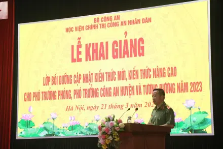Ngày 21/3/2023, Học viện Chính trị Công an nhân dân tổ chức Lễ Khai giảng Lớp Bồi dưỡng cập nhật kiến thức mới, kiến thức nâng cao đối với Phó trưởng phòng và Phó trưởng công an cấp huyện và tương đương mở tại Học viện năm 2023. Đồng chí Trung tướng Phan Xuân Tuy, Bí thư Đảng ủy, Giám đốc Học viện Chính trị CAND dự và chủ trì buổi Lễ. Tham dự có: đại diện Cục Đào tạo, Bộ Công an; lãnh đạo các đơn vị chức năng thuộc Học viện Chính trị CAND cùng toàn thể học viên khóa học.