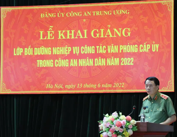 Sáng ngày 13/6/2022, tại Học viện Chính trị CAND, Văn phòng Đảng ủy Công an Trung ương phối hợp với Học viện Chính trị Công an nhân dân tổ chức lễ khai giảng lớp bồi dưỡng nghiệp vụ công tác văn phòng cấp ủy trong CAND năm 2022. Trung tướng, TS Lê Quốc Hùng, Ủy viên Trung ương Đảng, Ủy viên Ban Thường vụ Đảng ủy Công an Trung ương, Thứ trưởng Bộ Công an dự chủ trì và phát biểu chỉ đạo.