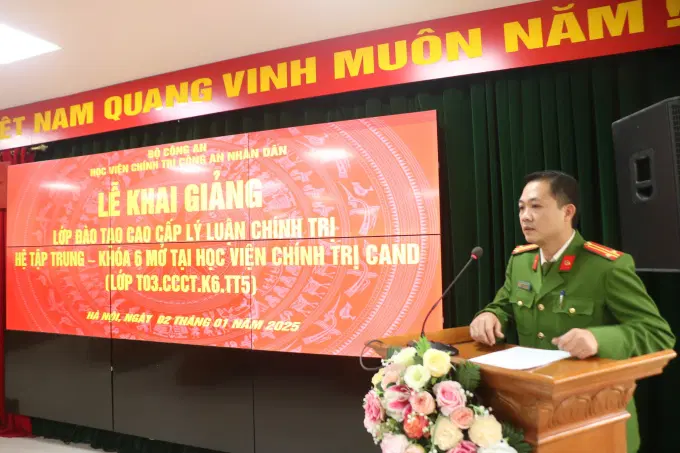 Thực hiện Kế hoạch số 2680/KH-T03-P6, ngày 27/12/2024 của Học viện Chính trị CAND, ngày 02/01/2025, Học viện tổ chức khai giảng lớp đào tạo cao cấp LLCT hệ tập trung, khóa 6 – T03.CCCT.K6.TT5. Đồng chí Trung tướng, PGS. TS. NGƯT Phan Xuân Tuy, Bí thư Đảng ủy, Giám đốc Học viện Chính trị CAND chủ trì buổi lễ.
