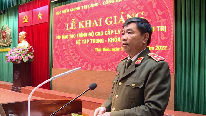 Phát biểu tại buổi Lễ, đồng chí Trung tướng, PGS.TS Trần Vi Dân chúc mừng các học viên đủ điều kiện tham gia lớp học và nhấn mạnh: trong suốt quá trình lãnh đạo cách mạng, xây dựng và phát triển đất nước, Đảng ta luôn coi trọng công tác đào tạo và bồi dưỡng cán bộ, coi đó là công việc gốc của Đảng. Trong sự nghiệp đổi mới hiện nay yêu cầu đặt ra với đội ngũ lãnh đạo, quản lý các cấp, các ngành càng trở nên cấp thiết nhằm nâng cao năng lực, trình độ lý luận chính trị, tư duy chiến lược, phẩm chất đạo đức lối sống, kỹ năng và phong cách lãnh đạo. Đối với công tác đào tạo, bồi dưỡng kiến thức trình độ Cao cấp LLCT giúp học viên trang bị, cập nhật những kiến thức cơ bản, hiện đại và có hệ thống về Chủ nghĩa Mác – Lênin và Tư tưởng Hồ Chí Minh; Đảng Cộng sản Việt Nam và đường lối cách mạng của Đảng; Khoa học lãnh đạo và quản lý… xây dựng người cán bộ Công an có bản lĩnh chính trị vững vàng, tuyệt đối trung thành với Đảng, Nhà nước và sự nghiệp cách mạng, góp phần xây dựng, củng cố vững chắc vai trò nòng cốt của đội ngũ lãnh đạo, chỉ huy trong Công an nhân dân.