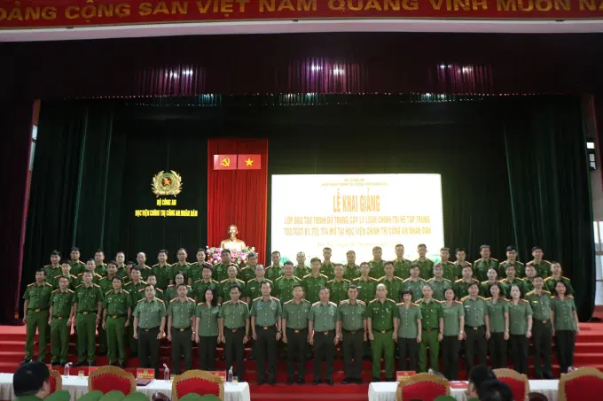 Thực hiện Kế hoạch số 1033/KH-T03-P6, ngày 06/6/2024 của Giám đốc Học viện Chính trị CAND về việc tổ chức Khai giảng Lớp đào tạo trình độ trung cấp lý luận chính trị hệ tập trung - T03.TCCC.TT3, TT4 khoá 1 mở tại Học viện Chính trị CAND; chiều ngày 10/6/2024, Học viện Chính trị Công an nhân dân đã long trọng triển khai tổ chức Lễ khai giảng 02 lớp học TT3, TT4. Đồng chí Trung tướng,PGS. TS Phan Xuân Tuy, Bí thư Đảng ủy, Giám đốc Học viện Chính trị CAND chủ trì buổi Lễ. Tham dự có đồng chí Đại tá, TS Nguyễn Anh Tuấn, Phó Cục trưởng Cục Đào tạo; Ban Giám đốc Học viện; đại diện lãnh đạo các đơn vị chức năng thuộc Học viện Chính trị CAND và toàn thể học viên hai lớp học.
