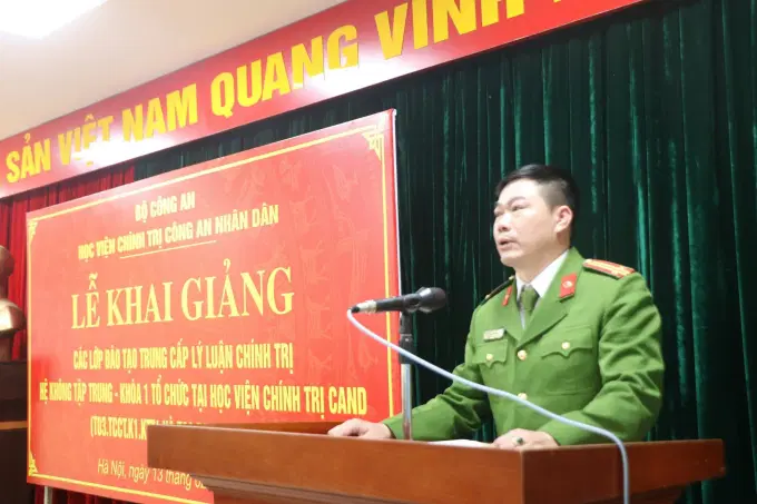 Đồng chí Giám đốc Học viện khẳng định chương trình đào tạo trung cấp lý luận chính trị có ý nghĩa hết sức quan trọng, góp phần cung cấp cho học viên các kiến thức về lý luận chính trị đáp ứng yêu cầu nhiệm vụ xây dựng lực lượng CAND thật sự trong sạch, vững mạnh, chính quy, tinh nhuệ, hiện đại trong kỷ nguyên mới của đất nước. Do đó, mỗi học viên khi tham gia học tập phải xác định tinh thần học tập nghiêm túc, chủ động, trách nhiệm, tích cực, tiếp thu hiệu quả các kiến thức phục vụ quá trình công tác. Đối với các đơn vị thuộc Học viện, đồng chí Giám đốc Học viện đề nghị nêu cao tinh thần trách nhiệm, chuẩn bị và tổ chức khóa học đảm bảo chất lượng, đúng quy định; đặc biệt phải tích cực đổi mới phương pháp giảng dạy, tăng cường trao đổi, thảo luận, quan tâm đảm bảo hậu cần phục vụ công tác học tập của học viên.